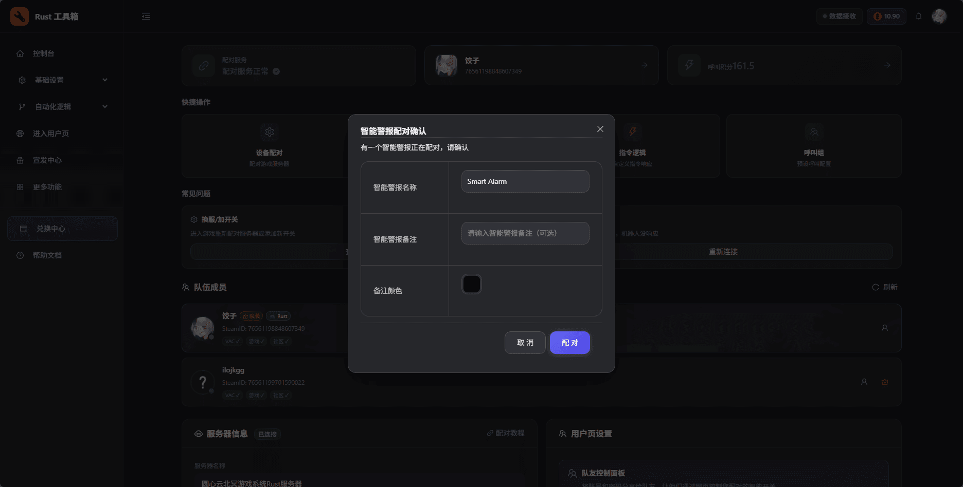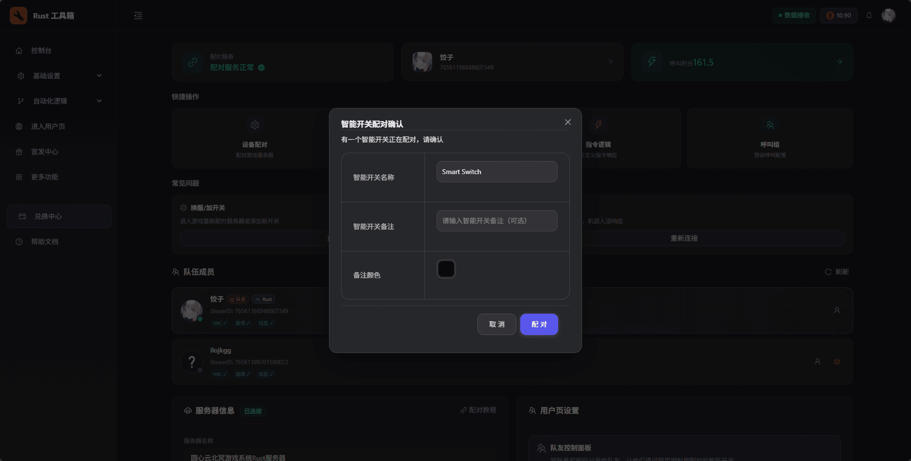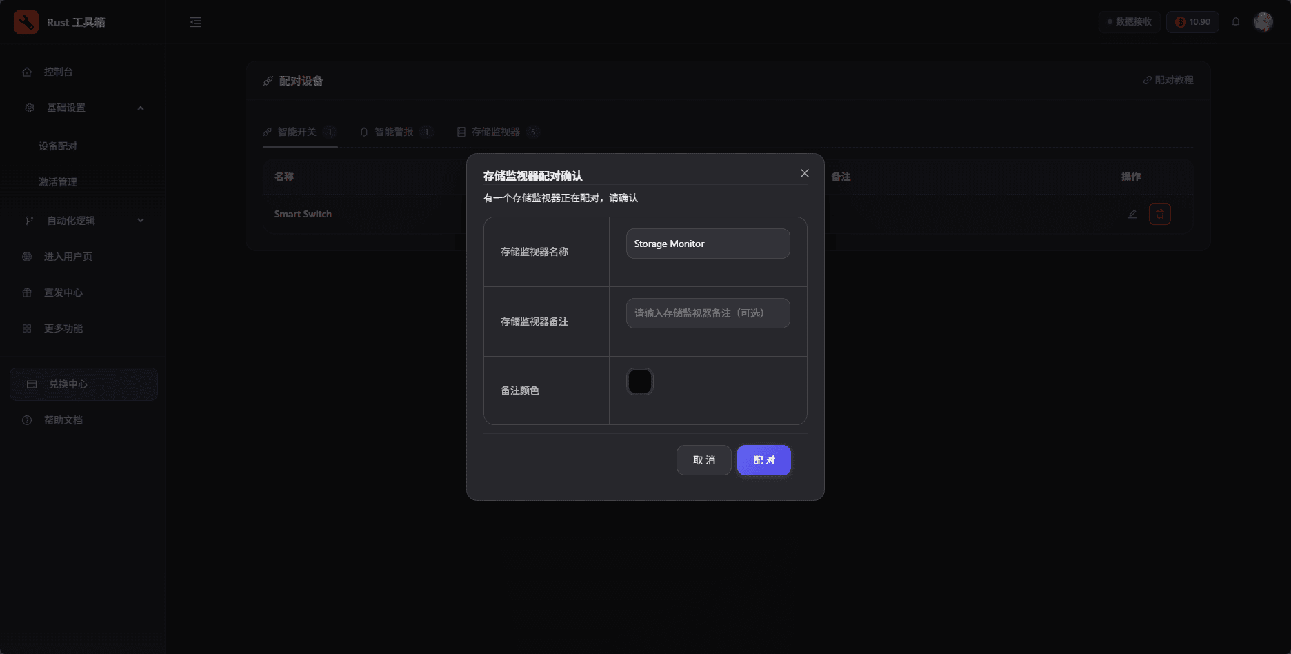 After clicking, open the Rust Toolbox dashboard. You’ll see a pairing confirmation pop-up. Give the switch a memorable name and confirm.